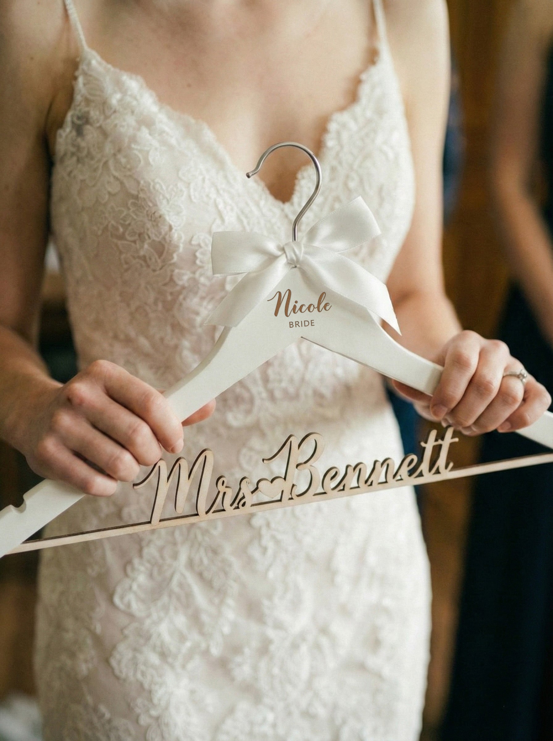 Give the newlyweds a gift that goes beyond the ceremony – a set of matching hangers that will be treasured for a lifetime.